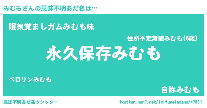 | 男性向けラノベタイトル風あだ名 | 『みむもという概念が存在しない退屈な世界 』 |