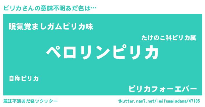| ヒーロー風カッコイイあだ名 | 『スーパーピリカ』『友情の使者ピリカ』 |