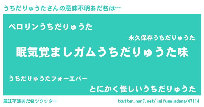| 男性向けラノベタイトル風あだ名 | 『おまえをオタクにしてやるから、俺をうちだりゅうたにしてくれ! 』 |