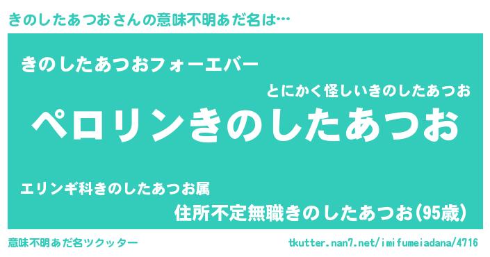 | ヒーロー風カッコイイあだ名 | 『スーパーキノシタアツオ』 |