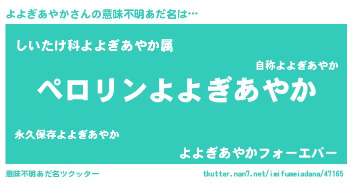 | 胡散臭い通販商品みたいなあだ名 | 『億万長者になれる霊験あらたかなお札…その名も「よよぎあやか」』 |