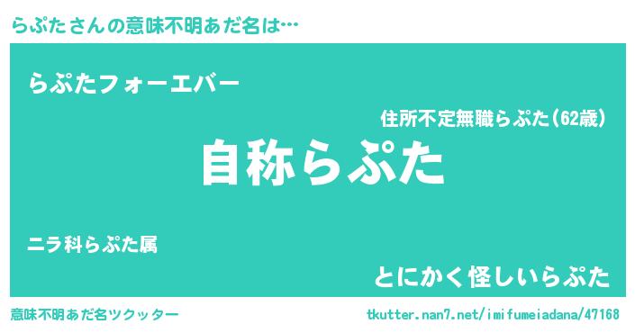 | 伝説のあだ名 | 『秘められし忍者らぷた』 |