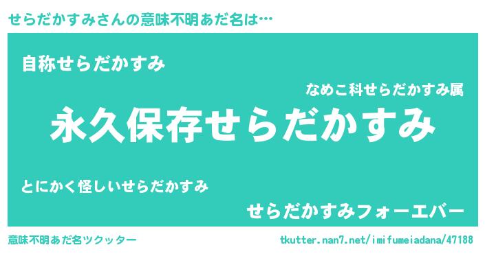 | 肩書あだ名 | 『せらだかすみ先生』『せらだかすみ閣下』 |