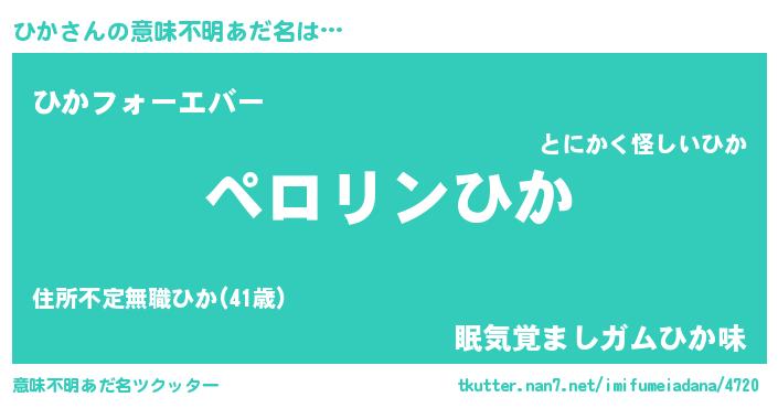 | ヒーロー風カッコイイあだ名 | 『スーパーヒカ』『ウルトラひかマン』 |