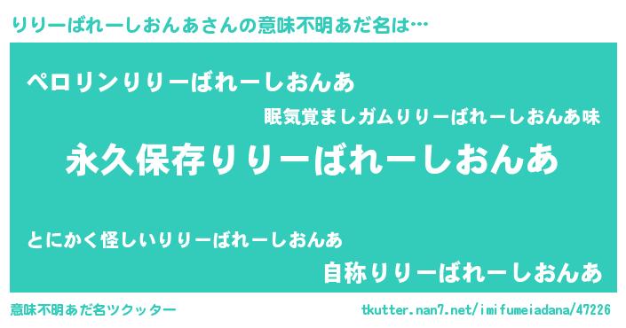 | 女子向けラノベタイトル風あだ名 | 『異世界で失敗しない100のりりーばれーしおんあ』 |