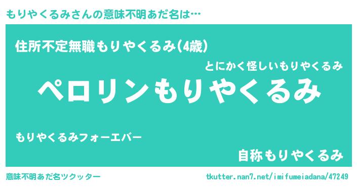 | 胡散臭い通販商品みたいなあだ名 | 『モテモテ間違いなし霊験あらたかなお札…その名も「もりやくるみ」』 |