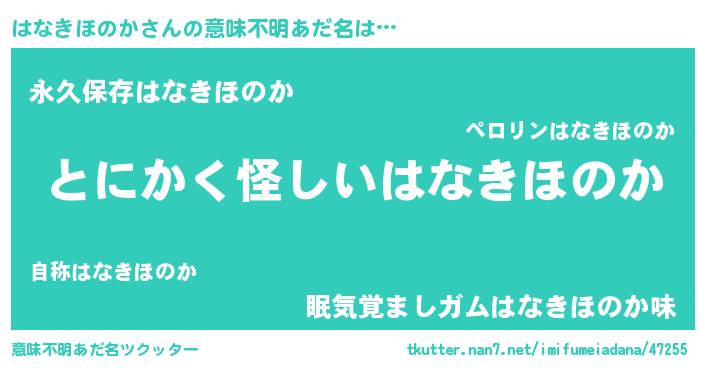| 男性向けラノベタイトル風あだ名 | 『はたらくはなきほのかさま!』 |