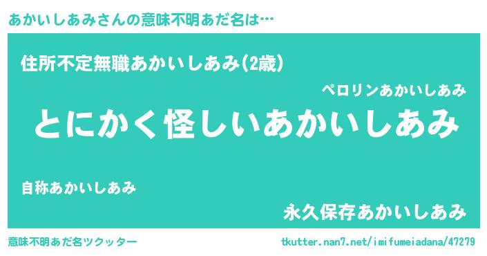 | 男性向けラノベタイトル風あだ名 | 『はたらくあかいしあみさま!』 |