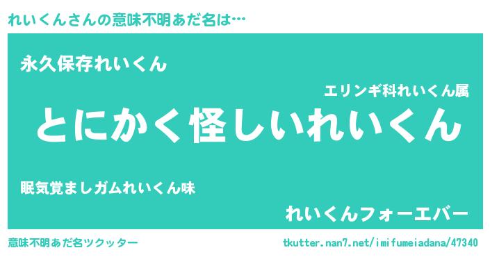 | 男性向けラノベタイトル風あだ名 | 『れいくんの嫁は女の子じゃないと思った?』 |