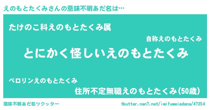 | ポケモン風あだ名 | 『メロエッノ』『ヒエノモトタクミ』 |