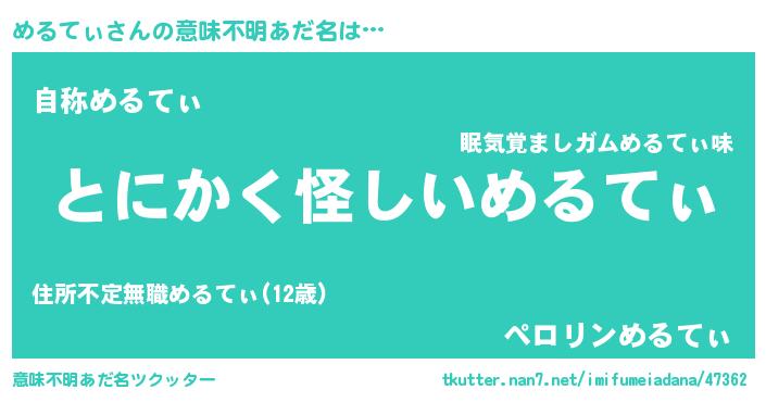 | ヒーロー風カッコイイあだ名 | 『銀牙騎士メル』『最強戦士メルティ』 |