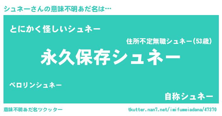 | 男性向けラノベタイトル風あだ名 | 『シュネーという概念が存在しない退屈な世界 』 |