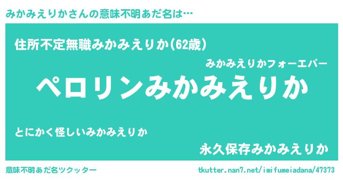 | 男性向けラノベタイトル風あだ名 | 『みかみえりかの憂鬱』 |