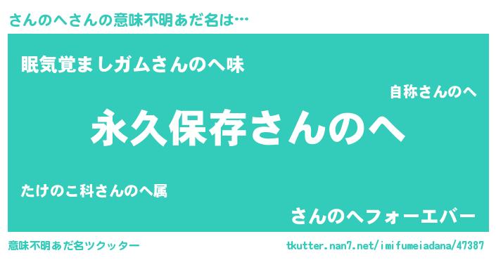 | 女子向けラノベタイトル風あだ名 | 『さんのへの契約王妃』『さんのへ恋絵巻』 |
