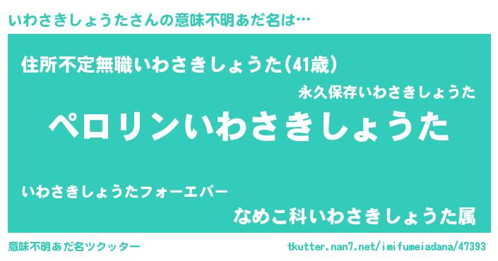 | 男性向けラノベタイトル風あだ名 | 『いわさきしょうたに滅ぼされるだけの簡単なお仕事です』 |