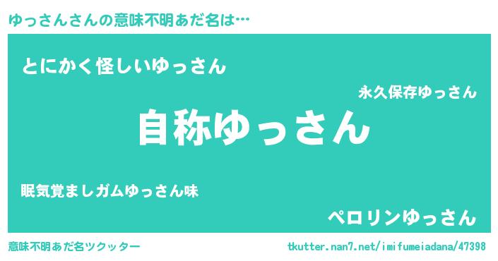 | 女子向けラノベタイトル風あだ名 | 『ゆっさんストレイドッグス』 |