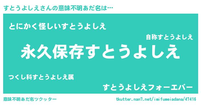 | 男性向けラノベタイトル風あだ名 | 『すとうよしえという概念が存在しない退屈な世界 』 |