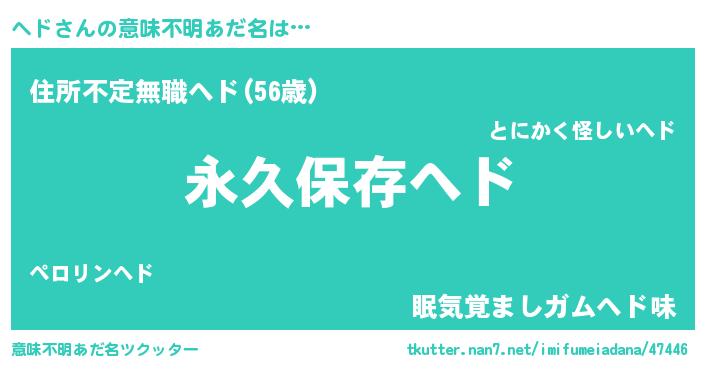 | 伝説のあだ名 | 『聞きしに勝る勇者ヘド』 |