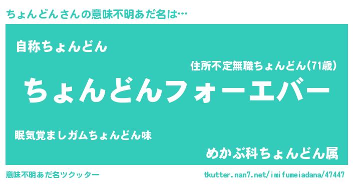 | 女子向けラノベタイトル風あだ名 | 『ちょんどんの雑貨屋さん』 |