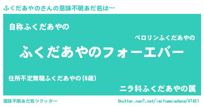 | 胡散臭い通販商品みたいなあだ名 | 『世界が平和になる高級そうな皿…その名も「ふくだあやの」』 |