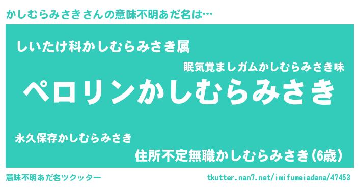 | ヒーロー風カッコイイあだ名 | 『スーパーカシムラミサキ』 |