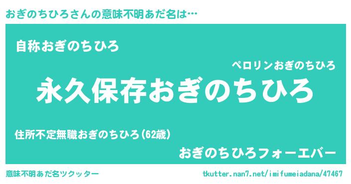 | ヒーロー風カッコイイあだ名 | 『ネオオギノチヒロ』『仮面オギダー』 |