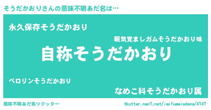 ヘコむあだ名 | 『そうだかおり(震え声)』『そうもー』 |