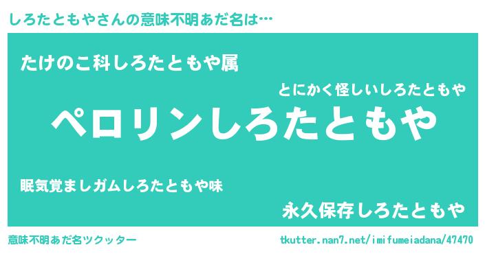 | 胡散臭い通販商品みたいなあだ名 | 『億万長者になれるブレスレット…その名も「しろたともや」』 |