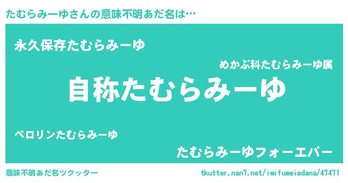 | 肩書あだ名 | 『たむらみーゆ総統』『たむらみーゆ校長』 |