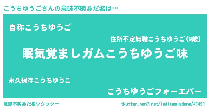 | ヒーロー風カッコイイあだ名 | 『慈愛の使者こうちゆうご』 |