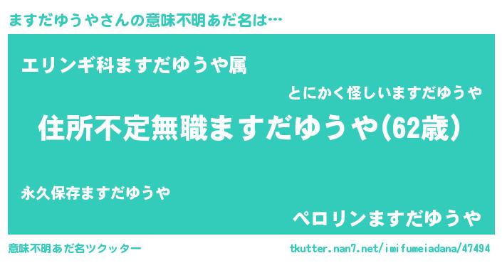 | 男性向けラノベタイトル風あだ名 | 『この素晴らしい世界にますだゆうやを!』 |