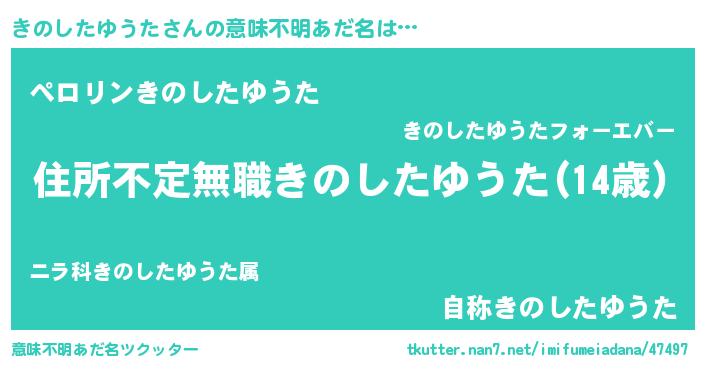 | 男性向けラノベタイトル風あだ名 | 『魔弾の王ときのしたゆうた』 |