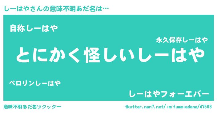 | 男性向けラノベタイトル風あだ名 | 『しーはやの嫁は女の子じゃないと思った?』 |