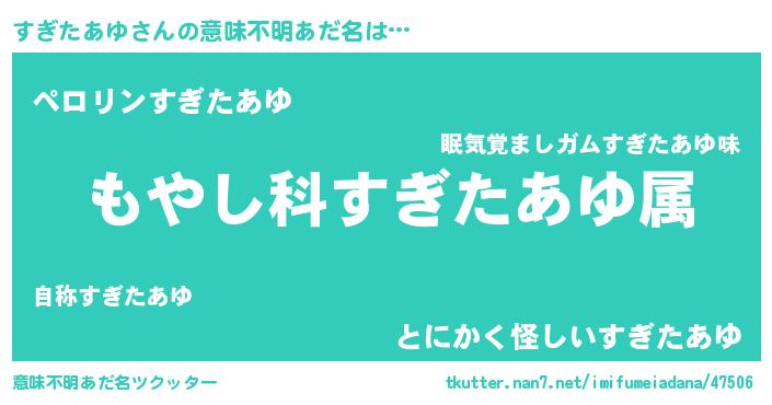 | 女子向けラノベタイトル風あだ名 | 『すぎたあゆの玉の輿計画!』 |