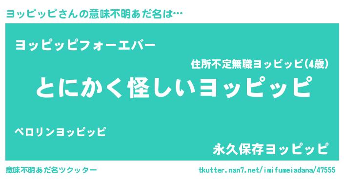 | 胡散臭い通販商品みたいなあだ名 | 『信頼と実績のサプリメント…その名も「ヨッピッピ」』 |