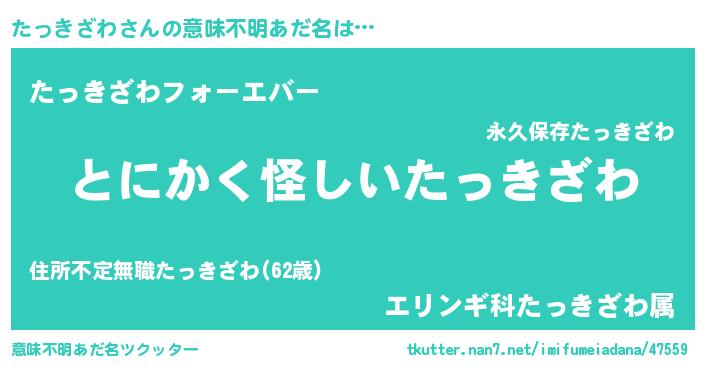 | ヒーロー風カッコイイあだ名 | 『幻影騎士タッ』『ネオタッキザワ』 |