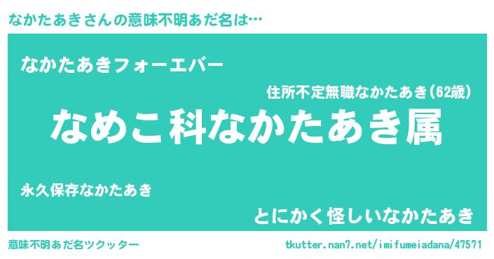 | 男性向けラノベタイトル風あだ名 | 『転生したらなかたあきだった件』 |