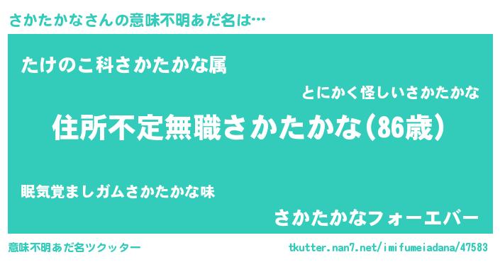 | 男性向けラノベタイトル風あだ名 | 『さかたかなに滅ぼされるだけの簡単なお仕事です』 |