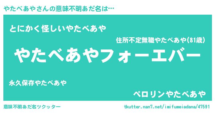 | 欧米人風あだ名 | 『やたべあやクリステル』 |