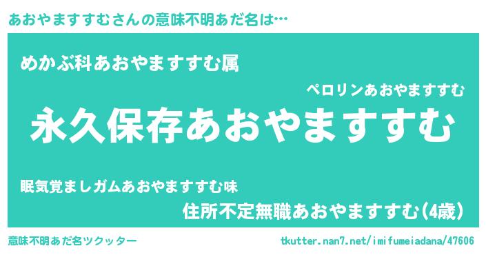 | 胡散臭い通販商品みたいなあだ名 | 『前代未聞の健康食品…その名も「あおやますすむ」』 |
