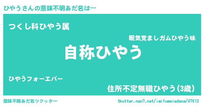 | ヘコむあだ名 | 『なまこ酢』『ひやう(笑)』『ひやお』 |