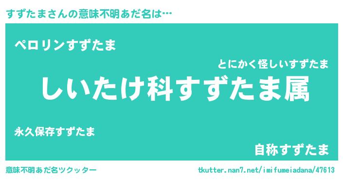 | 男性向けラノベタイトル風あだ名 | 『スズタマスレイヤー』 |
