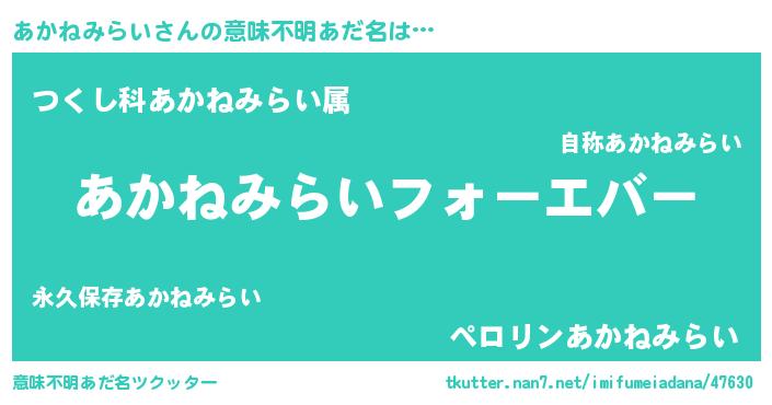 | ファンタジー風あだ名 | 『エターナルアカネミライー』 |