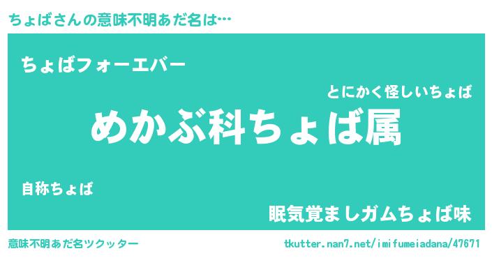 | 肩書あだ名 | 『ちょば中将』『ちょば総理大臣』 |