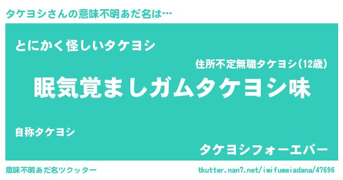 | 欧米人風あだ名 | 『ダニエルタケヨシ』『ウサインタケヨシ』 |