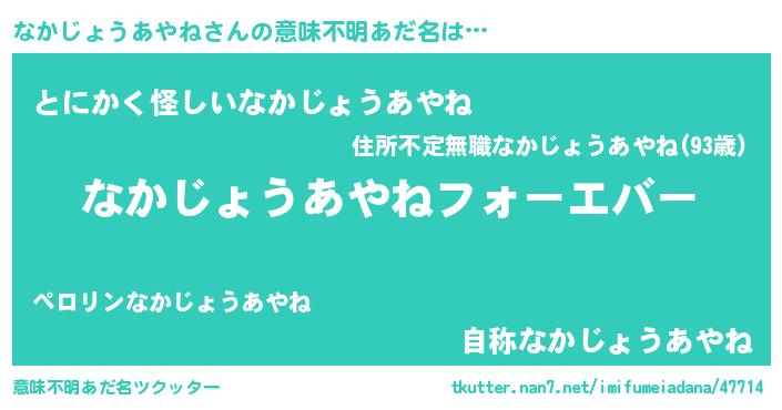 | ファンタジー風あだ名 | 『エターナルナカジョウアヤネー』 |