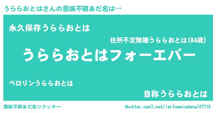 | ヒーロー風カッコイイあだ名 | 『ウルトラうららおとはマン』 |