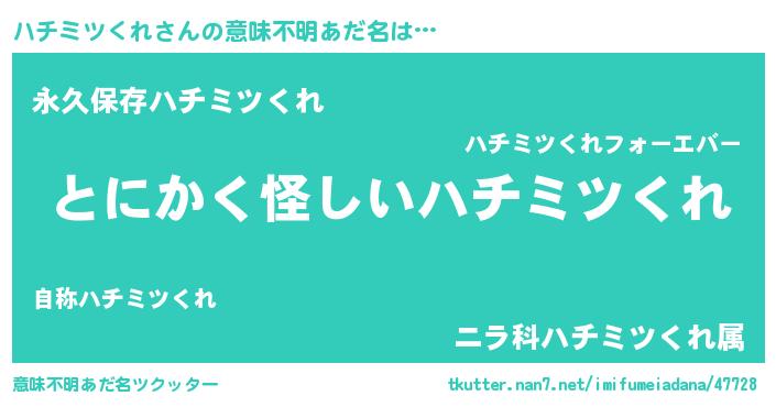 | ポケモン風あだ名 | 『ヒハチミツクレ』『メロハッチ』 |