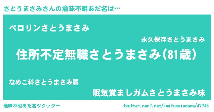 | ヒーロー風カッコイイあだ名 | 『仮面サトダー』『スーパーサトウマサミ』 |