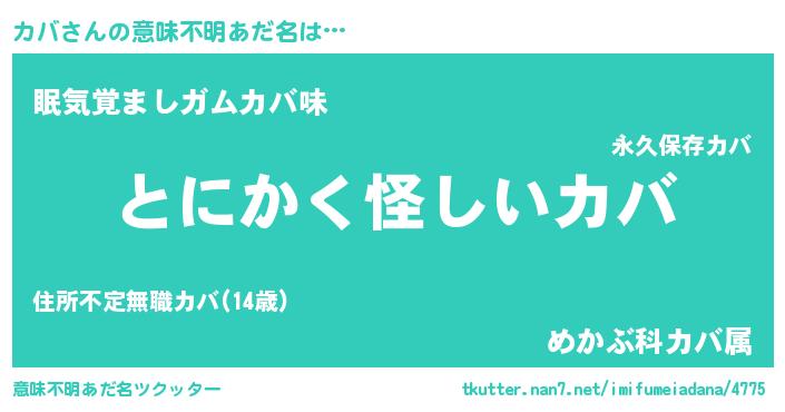 | 男性向けラノベタイトル風あだ名 | 『ダンジョンにカバを求めるのは間違っているだろうか』 |